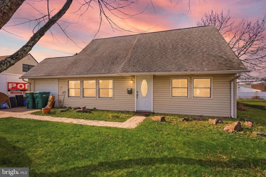 Expanded, remodeled, and absolutely stunning Cape Cod in the highly desirable Highland Park neighborhood of Levittown within the sought-after Neshaminy School District, located directly across from Carl Sandburg Middle School. This beautifully maintained 3-bedroom, 2-bath home offers over 2,200 square feet of upgraded living space featuring a gourmet kitchen with granite countertops, tumbled marble backsplash, vegetable prep sink, stainless steel Kenmore appliances including a double oven and built-in convection microwave, wine rack, and spacious eat-in island. The kitchen opens to a dramatic great room with soaring cathedral ceilings, floor-to-ceiling stone fireplace, custom bar with Beer Meister system, ceiling fans, and abundant recessed lighting. A sun-filled formal dining room with chair rail detailing adds elegance, while the first-floor primary suite offers a walk-in closet and remodeled expanded bath. The main level also includes a large mudroom with garage access and laundry. Upstairs you’ll find two generously sized bedrooms and a remodeled full bath. The fenced backyard is perfect for entertaining with a stamped concrete patio and fire pit area. Additional features include central air, attached garage, and public utilities. Conveniently located near major highways, shopping, dining, and parks, this home combines comfort, community, and convenience — don’t miss the opportunity to make it yours.